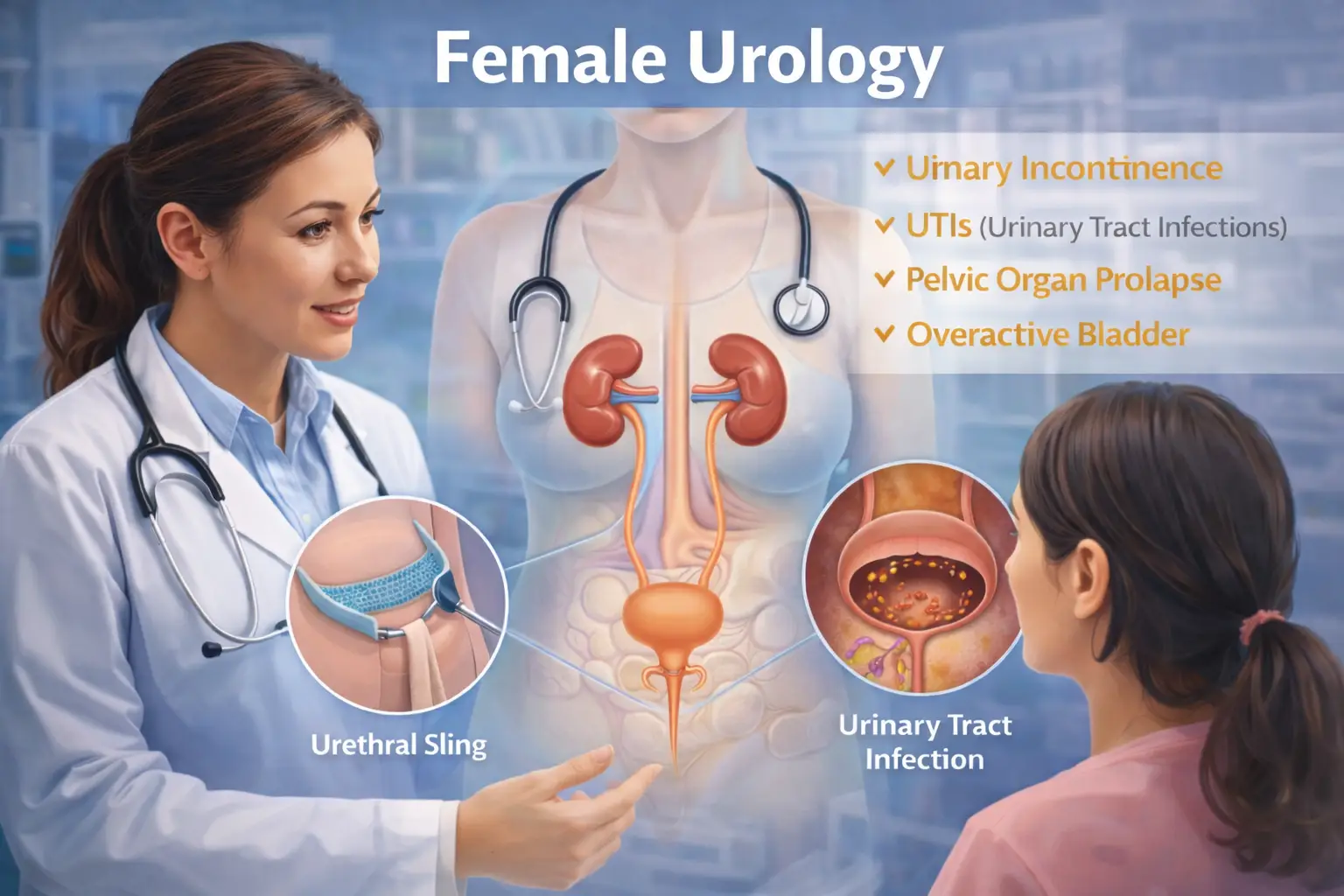 Comprehensive care for women’s urological problems including urinary incontinence, recurrent urinary infections, bladder dysfunction, fistulas, and post-surgical urinary issues.