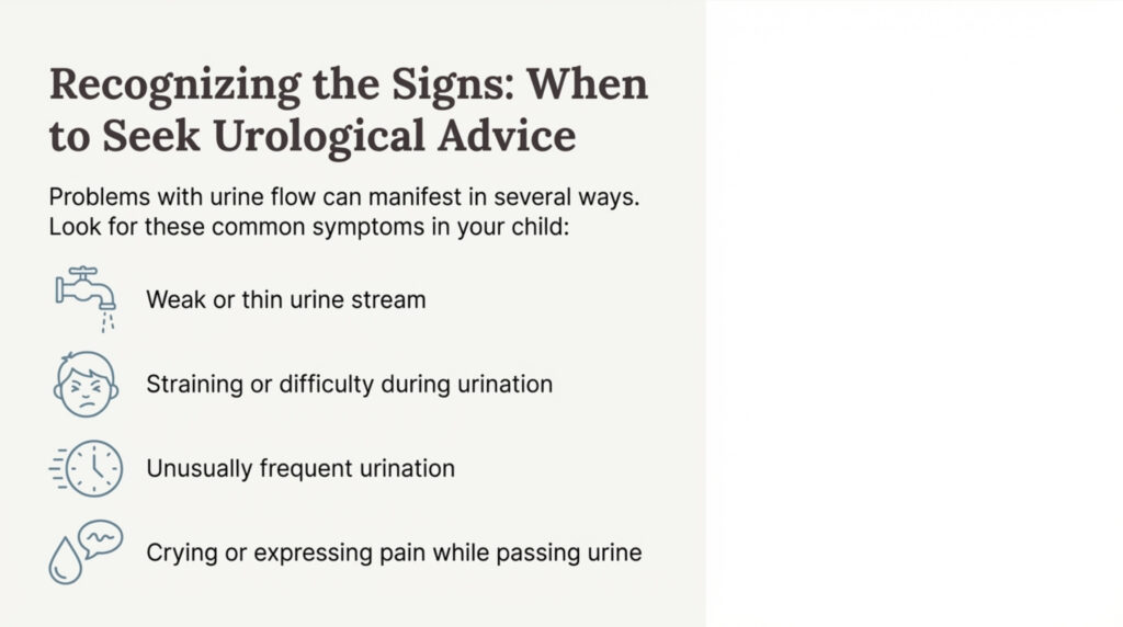Rare but serious condition causing poor urine flow in children, diagnosed using RGU/MCU and treated with reconstructive techniques when required.