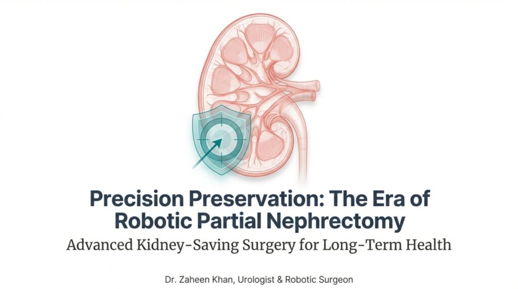 Robotic partial nephrectomy (RPN), also called robot-assisted partial nephrectomy (RAPN), has rapidly become a preferred kidney-sparing operation for many patients with localized kidney tumors. Performed using a surgical robot, the operation removes only the tumor and a small rim of healthy tissue rather than the entire kidney. This article explains what RAPN is, why it is chosen, who is a candidate, what the operation involves, risks and outcomes- Dr. Zaheen Khan, Urologist & Robotic Surgeon.